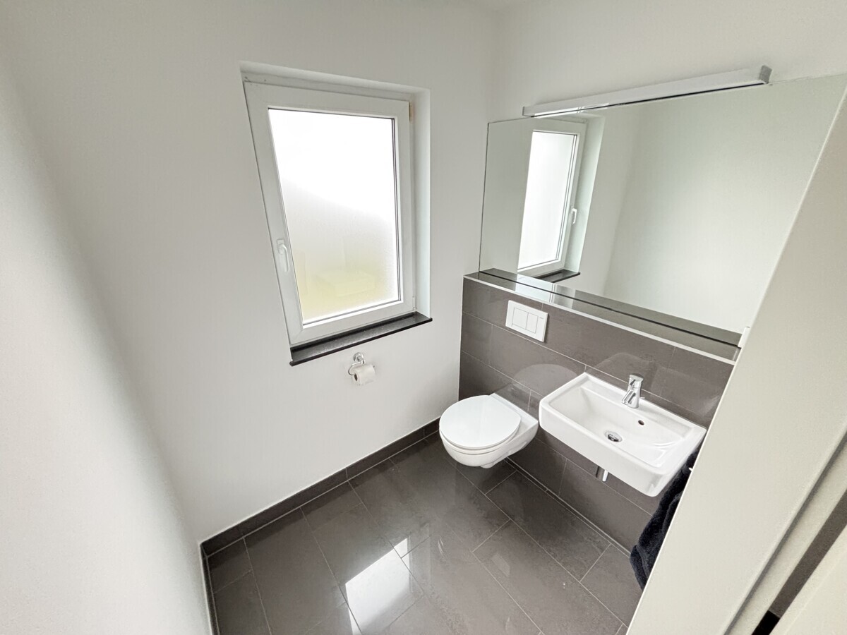 Das Haus besticht durch seine moderne, zeitlose Architektur und eine gute Bauqualität. Mit insgesamt fünf geräumigen Zimmern, darunter drei komfortable Schlafzimmer, ist ausreichend Raum für individuelle Rückzugsorte und gemeinsames Familienleben vorhanden. Zwei stilvoll gestaltete Badezimmer sorgen für zusätzlichen Komfort und Bequemlichkeit im Alltag.